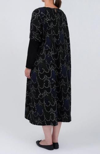 袖口の長いリブがアクセントになるフレアワンピース。リブは伸縮性のあるフライス素材を使用し、袖のプッシュアップがしやすく、袖丈をアレンジしてお召しいただけます。リブの上部分は少しパフ袖のようなふんわりとしたシルエットを作り、女性らしさを演出。たっぷりとした生地の分量感があり、歩いた時の揺れ感が綺麗な一着です。ポケットが付いているのも嬉しいポイントです。