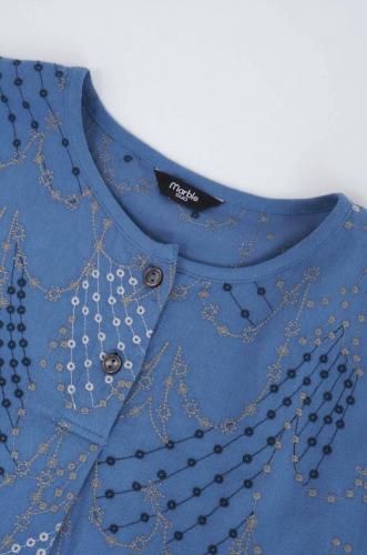 ツバメは古くから人の側で巣を作り共生してきた、幸運を象徴する渡り鳥です。キラキラとした星のシャワーを表現した、どこか幻想的で繊細な刺繍のテキスタイル。