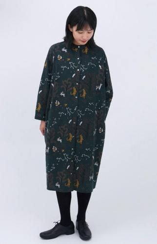 ストレートなシルエットのすっきりしたシャツワンピース。かっちりとした形なのでガーリーになりすぎず、かっこよく着ていただけます。前を開けて羽織としてもおすすめです。