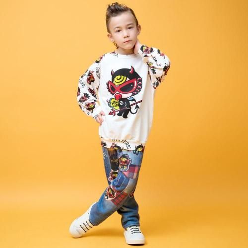 コロンとしたフォルムが可愛らしいDEVILKINの総柄と大きなDEVILKINのグラフィックがタッグを組んでラグラントレーナーになりました☆バックスタイルにももちろんDEVILKIN♪丸みのあるシルエットで着ていただけます。同じDEVILKINモチーフでコーディネートをまとめるととってもキュートです。