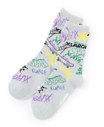 グラフィティ総柄クルーソックス( エクストララージキッズ )